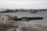Comments Off on The beach, a barge and oil terminals, South Portland.